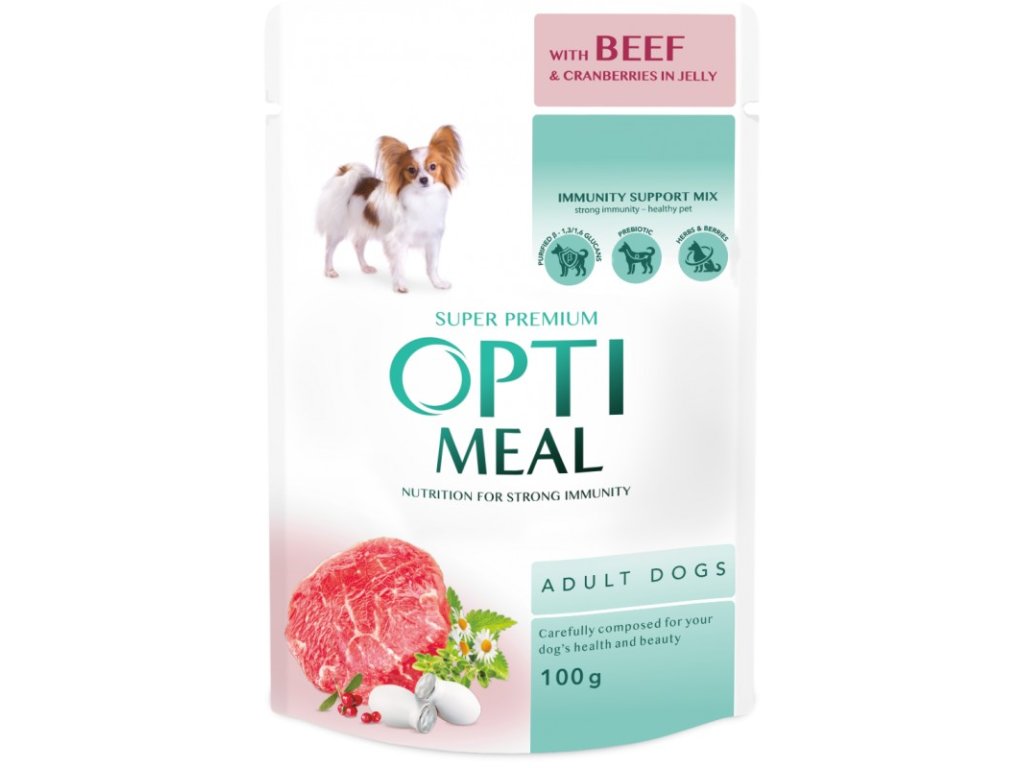 OPTIMEAL ™ KONZERVOVANÉ KRMIVO PRO DOSPĚLÉ PSY S HOVĚZÍM MASEM V BRUSINKOVÉM ŽELE