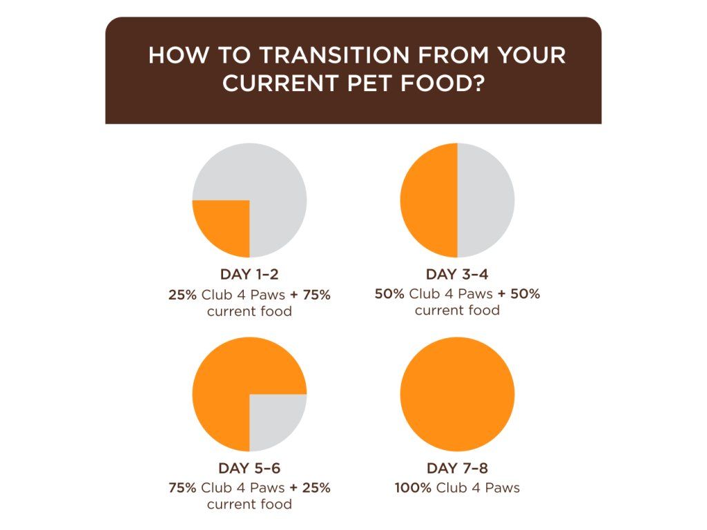 Metabolizovatelná energie na 100 g krmiva: 377 kJ (90 kcal).