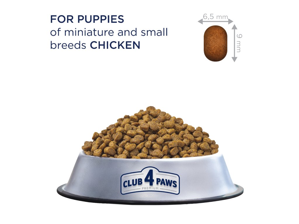 CLUB 4 PAWS PREMIUM KOMPLETNÍ SUCHÉ KRMIVO PRO ŠTĚŇATA MINIATURNÍCH A MALÝCH PLEMEN “S KUŘECÍM”.