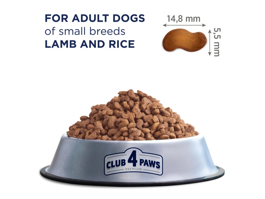 CLUB 4 PAWS PREMIUM S JEHNĚČÍM MASEM A RÝŽÍ. Kompletní suché krmivo pro dospělé psy malých plemen.