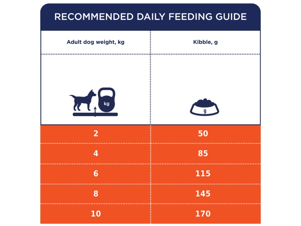 Uchovávejte na suchém a chladném místě, chraňte před přímým slunečním zářením. Krmivo je nutné zavádět postupně v průběhu 5-ti dnů. Zajistěte, aby zvíře mělo stálý přístup k pitné vodě. Individuální krmná dávka se může lišit v závislosti na věku, plemeni, úrovni aktivity a způsobu chovu zvířete.