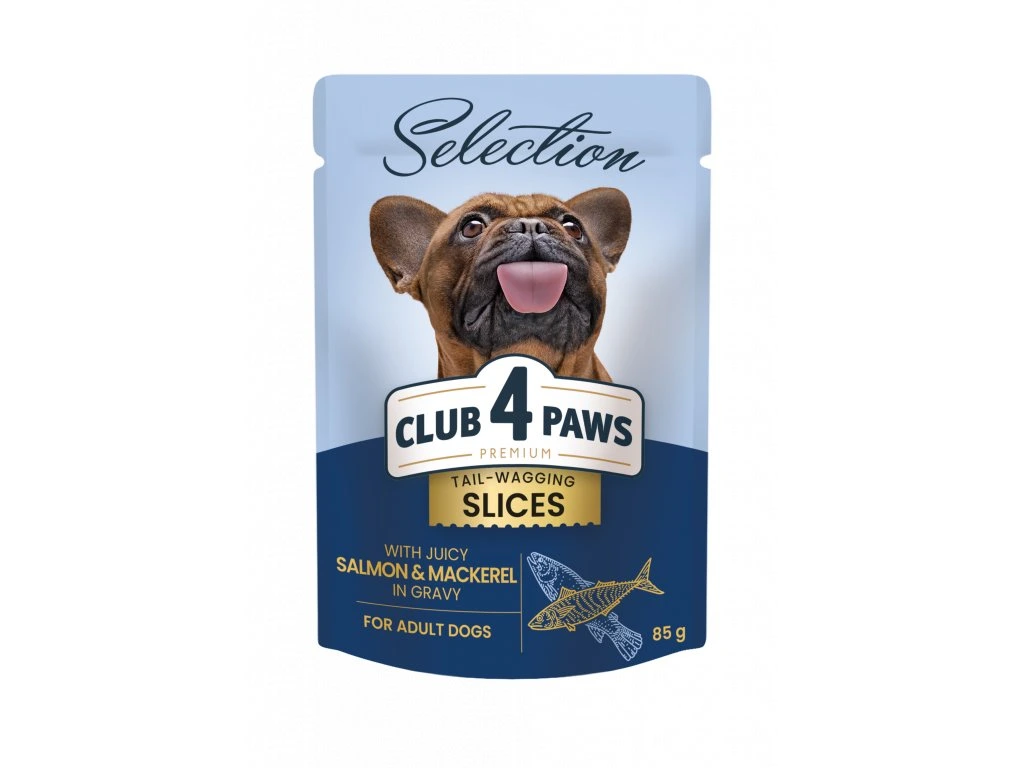 CLUB 4 PAWS PREMIUM PLUS PLÁTKY S LOSOSEM A MAKRELOU V OMÁČCE. Kompletní konzervované krmivo pro dospělé psy malých plemen